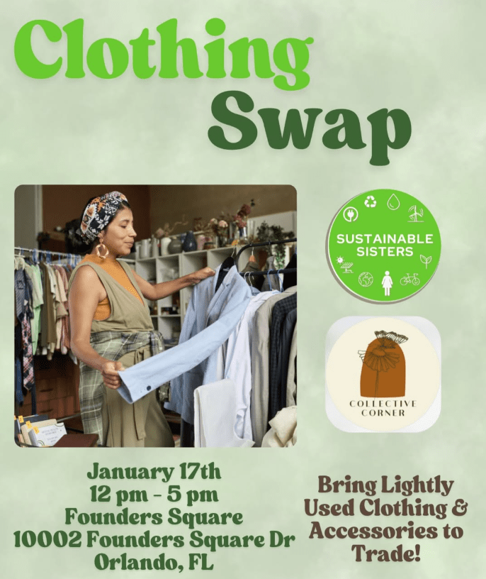 Join Sustainable Sisters and The Collective Corner of Orlando for our first clothing swap of 2026, taking place in Founders Square in Avalon Park, Orlando.